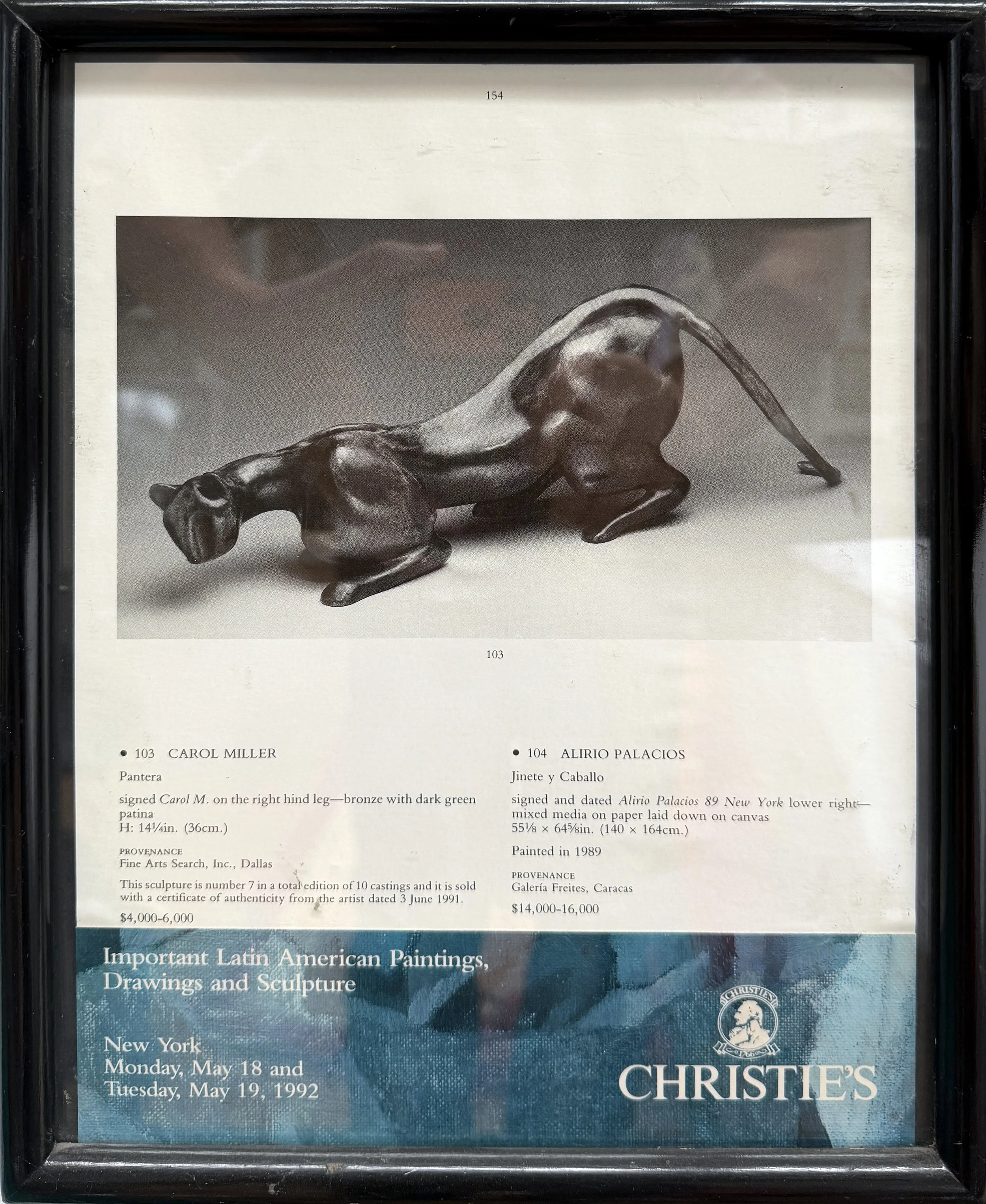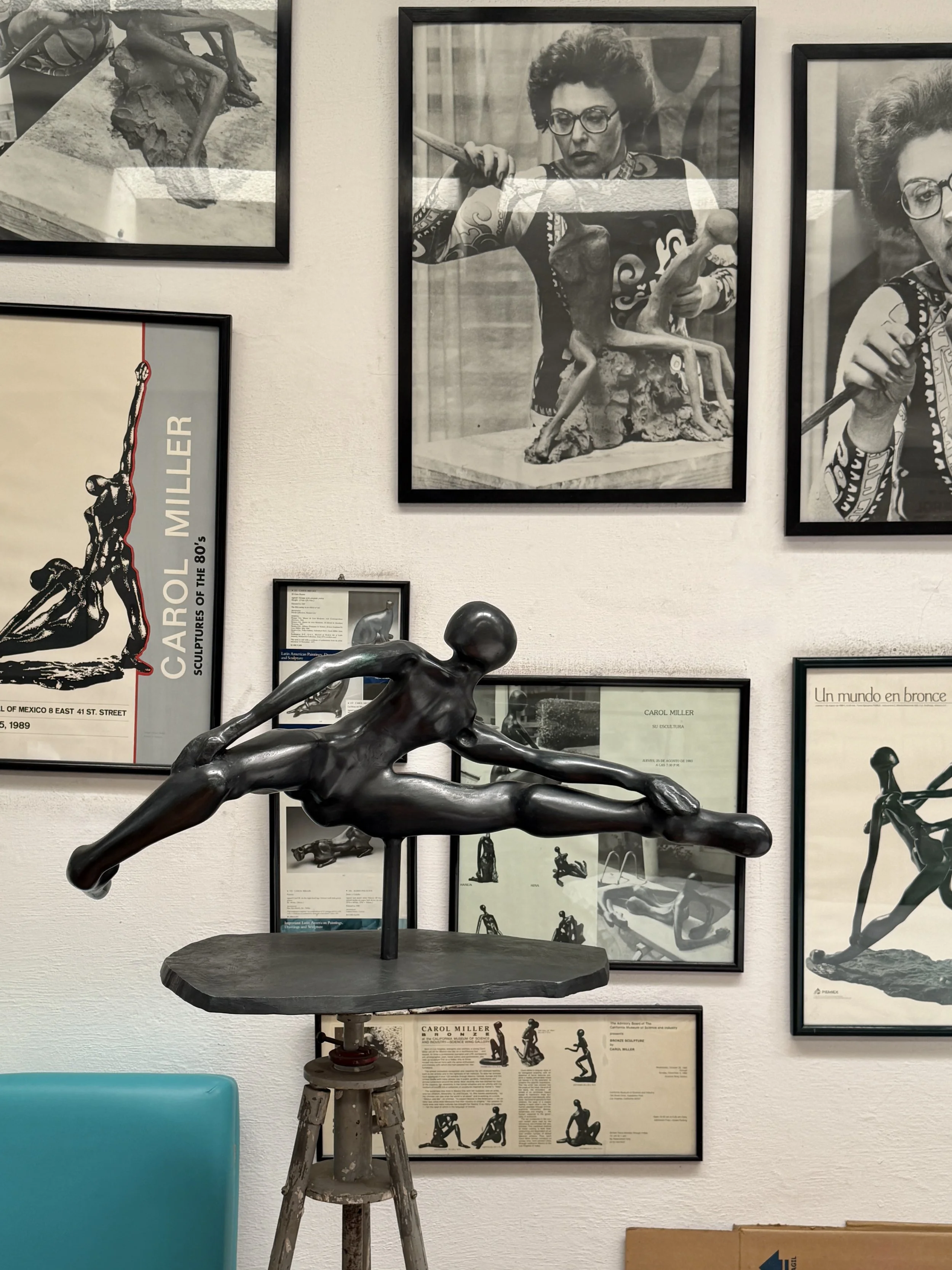 Her path to sculpture came through a single afternoon. While interviewing Mexican sculptress Charlotte Yazbek for Life, Miller found herself drawn into the studio. Yazbek offered her tools. Miller picked them up and built a career. Over four decades, she produced hundreds of bronze sculptures, exhibited in more than 200 individual and group shows, and mounted a major solo retrospective at the Museo Dolores Olmedo. Her studio in Pedregal — one of Mexico City's great neighborhoods of modernist architecture — became the place where the work was quietly, relentlessly made.